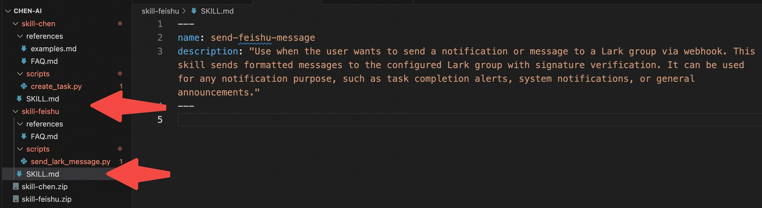 - 目前ai还不能直接改你的skill内容,比如你skill的py里有一个常量,想从A变成B,你跟AI说改一下,ai做不到因为他没权限,还是需要你手动改好然后上传上去。