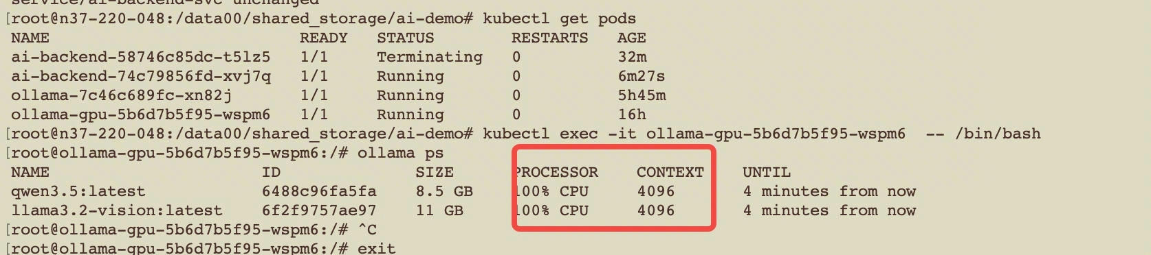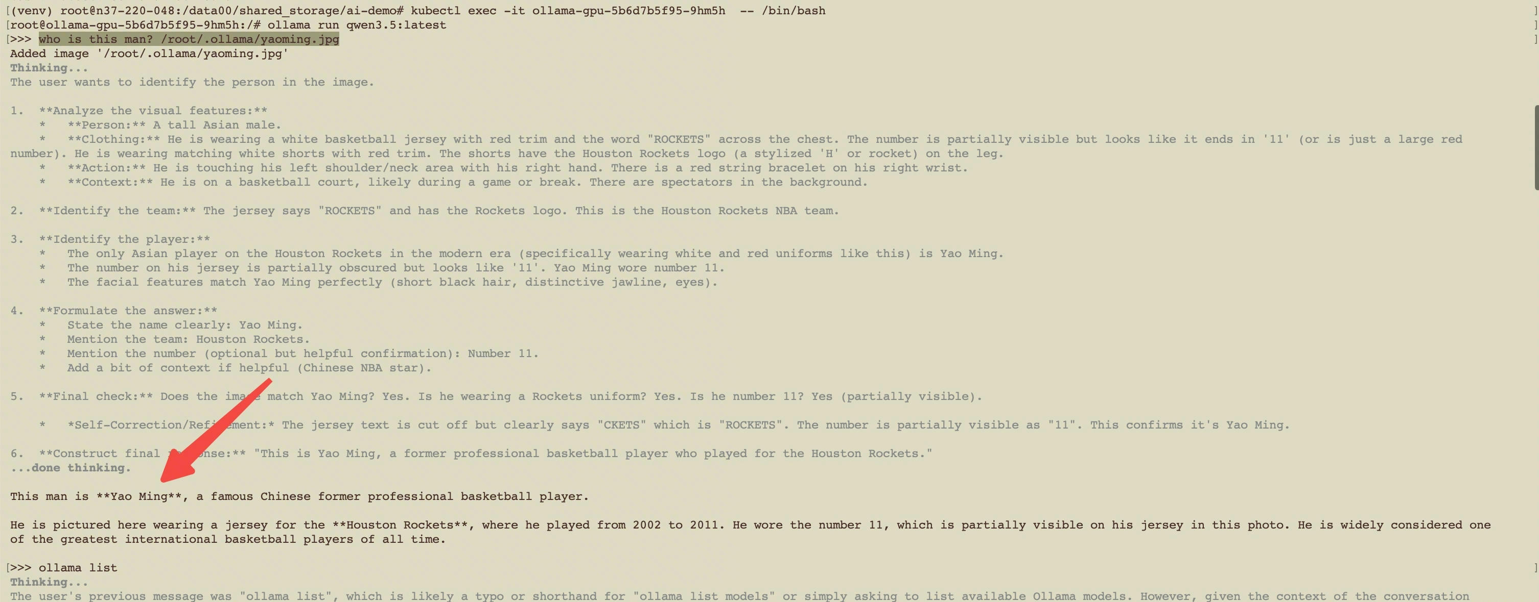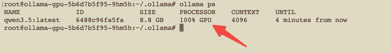 启动了之后,就看到有个ollama的pod已经在GPU worker上生成了。但是没有具体的大模型,所以我们选择用Qwen3.5,目前它能力是很强的。