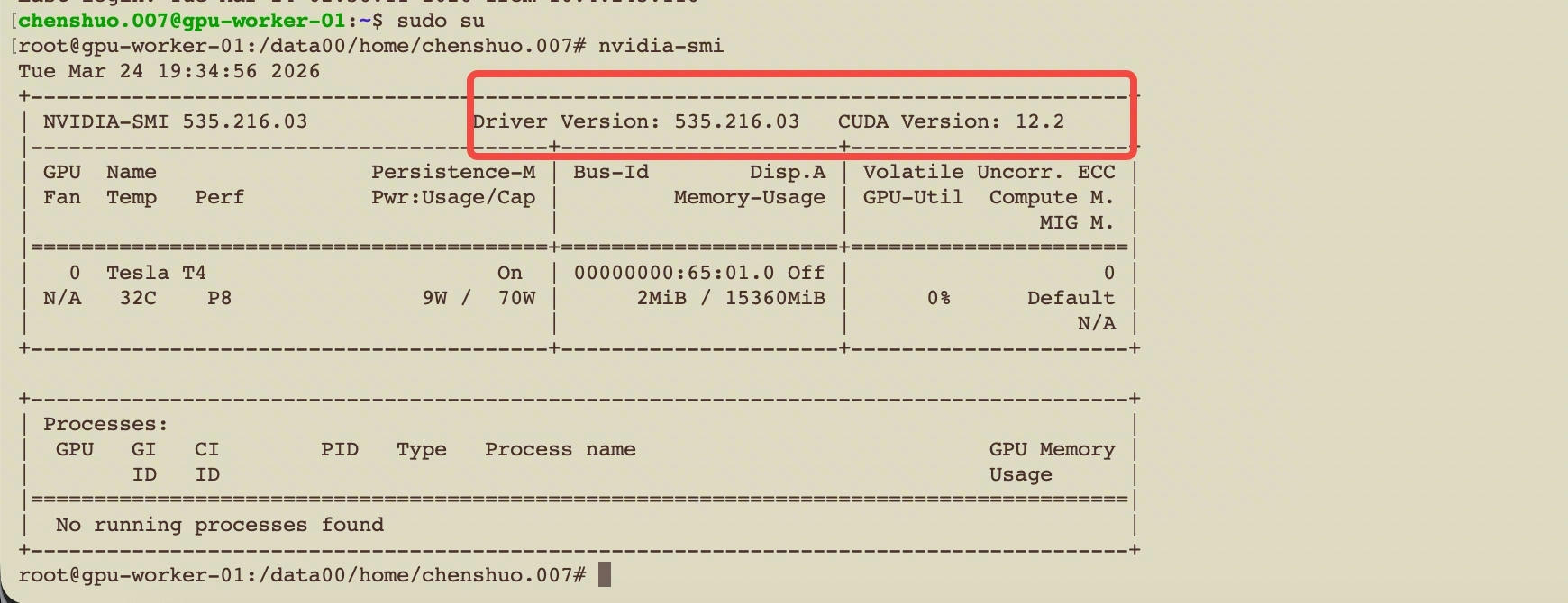 我后来查了一下,是因为我tesla T4跑的是450版本的驱动,最高只支持CUDA 10,而qwen 3.5是比较新的,要CUDA 12以上的版本,于是就在GPU上更新一下驱动:
