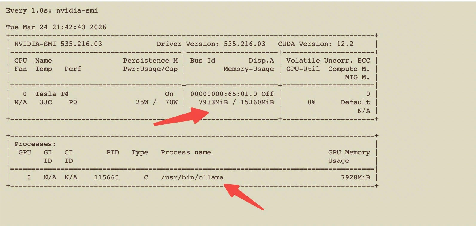 但是这里要确认一下ollama ps,看一下究竟是cpu在运行还是gpu在运行。比如我这里就发现“我的GPU在摸鱼,CPU在干活”: